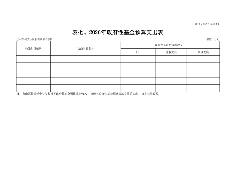 7.黄山区仙源镇中心学校2026年政府性基金预算支出表