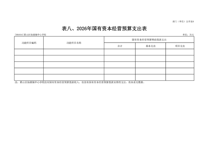 8.黄山区仙源镇中心学校2026年国有资本经营预算支出表
