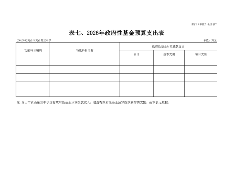 7.黄山市黄山第三中学2026年政府性基金预算支出表