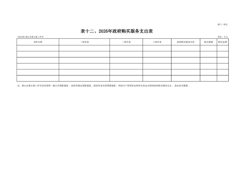 黄山市黄山第三中学2026年没有安排政府购买服务支出。