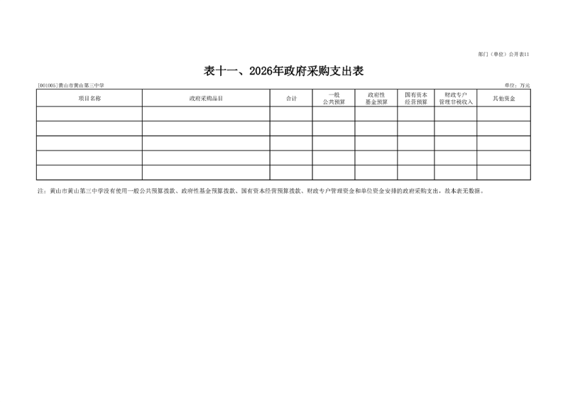 11.黄山市黄山第三中学2026年政府采购预算支出表