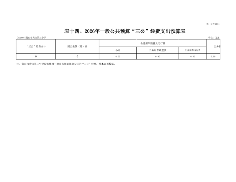 14.黄山市黄山第三中学2026年“三公”经费财政拨款支出预算表