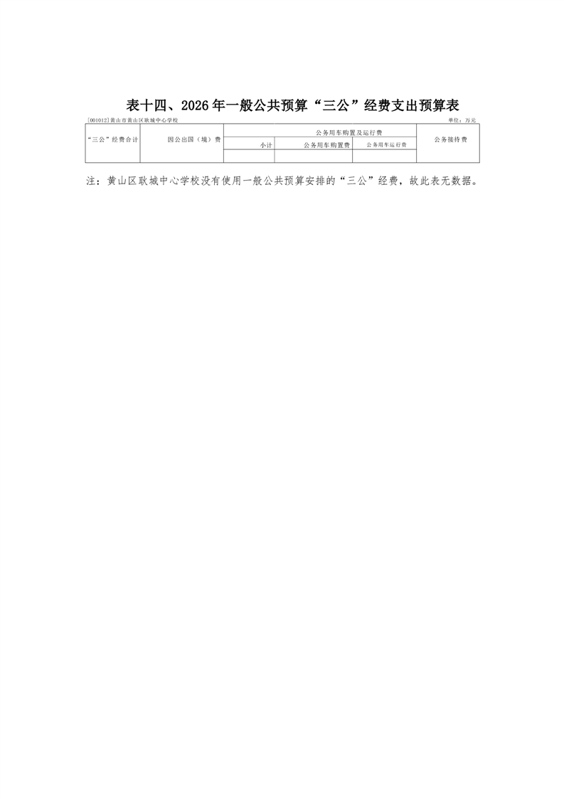 14.黄山区耿城中心学校2026年“三公”经费财政拨款支出预算表