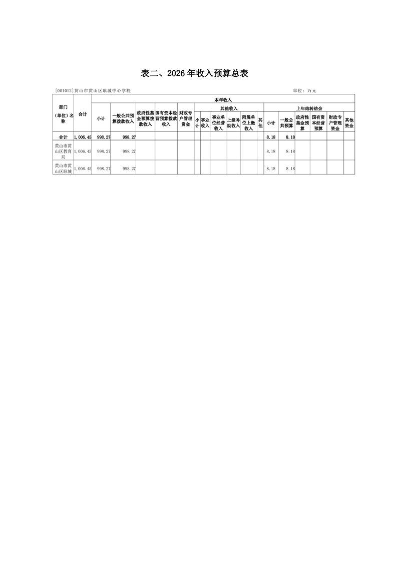 黄山区耿城中心学校2026年度部门预算编制范围的单位共1个,具体情况见下表: