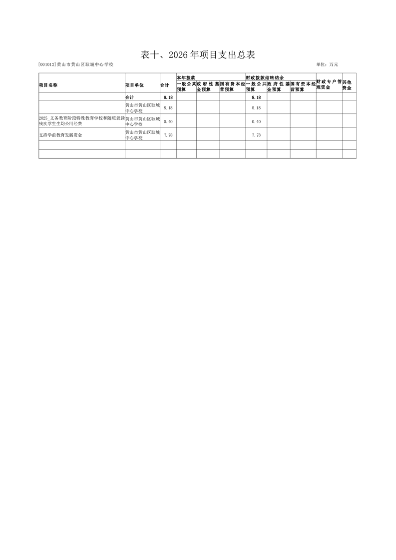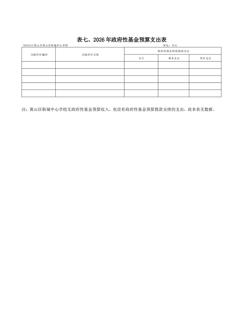 7.黄山区耿城中心学校2026年政府性基金预算支出表