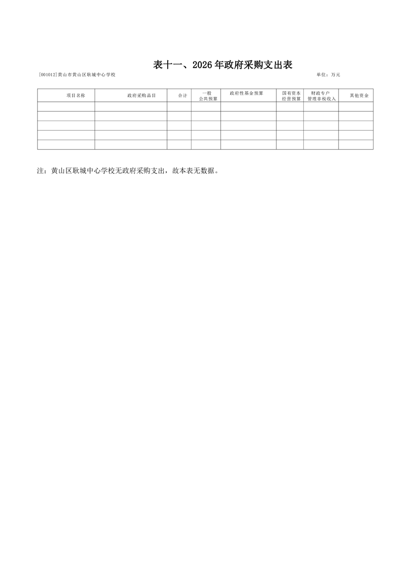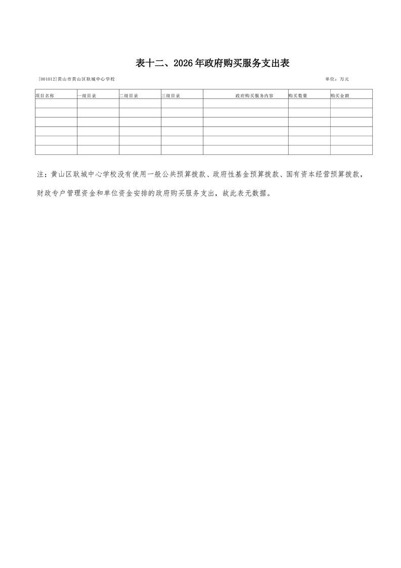 黄山区耿城中心学校2026年没有安排政府购买服务支出。