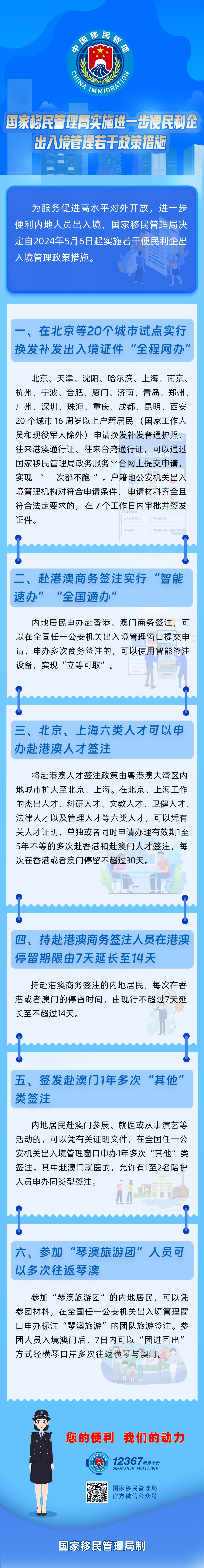 一图看懂!国家移民管理局实施进一步便民利企出入境管理若干政策措施