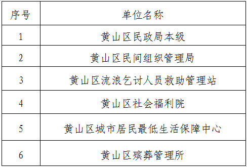 纳入黄山区民政局2022年度部门决算编制范围的二级单位共6个,详细情况见下表: