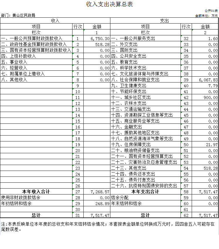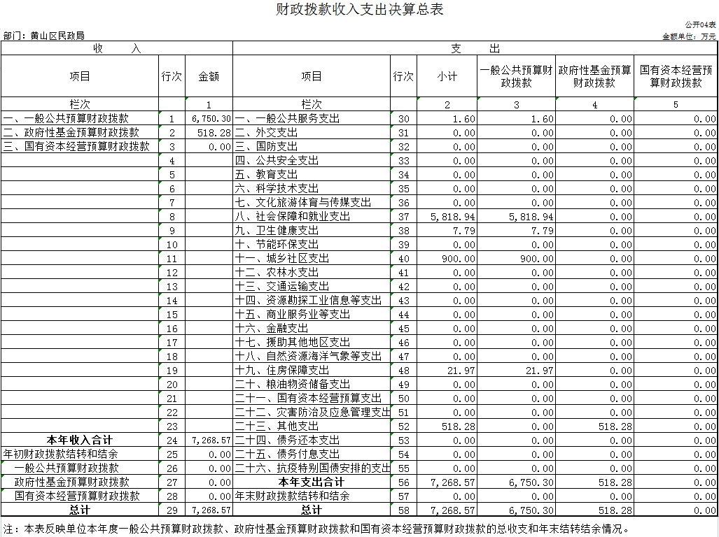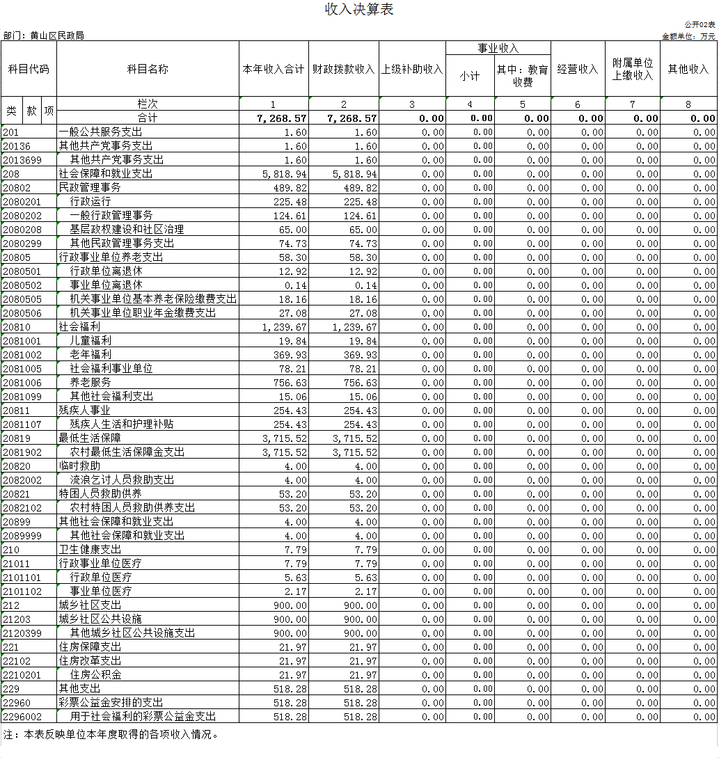 第二部分 黄山区民政局2022年度部门决算表