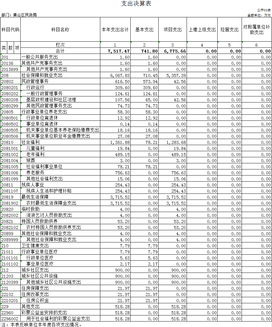 注:黄山区民政局没有使用国有资本经营预算安排的支出,故本表无数据
