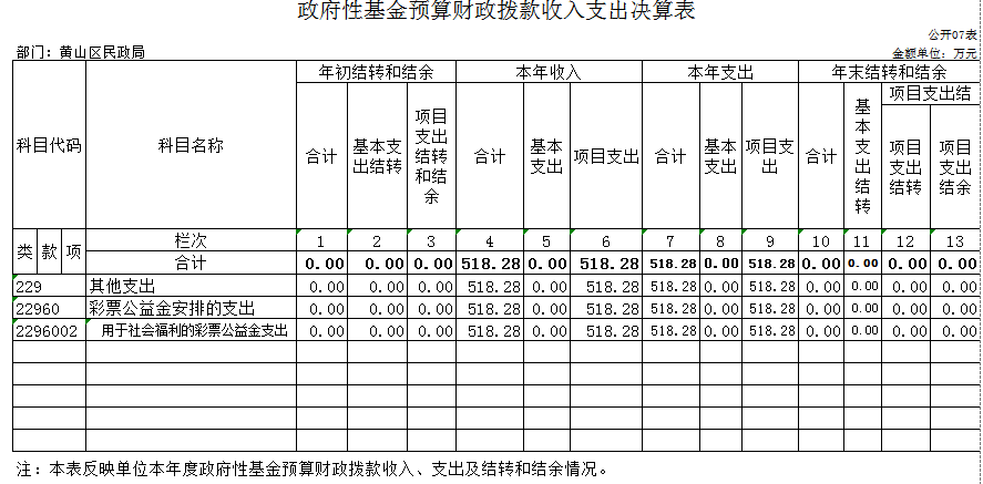 2022年政府性基金预算财政拨款年初结转和结余0万元,本年收入518.28万元,本年支出518.28万元,年末结转和结余0万元。具体情况说明如下: