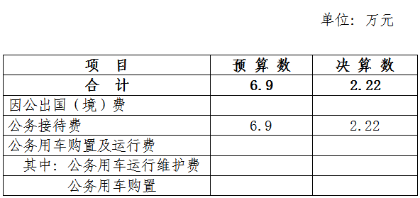 黄山区民政局2022年度一般公共预算财政拨款“三公”经费支出预算为6.9万元,支出决算为2.22万元,完成预算的32.17%,决算数小于预算数的主要原因是经费使用贯彻中央八项规定和省委省政府30条要求,严格执行《党政机关厉行节约反对浪费条例》、《转发<黄山市市直机关外宾接待经费管理办法>》(黄财行[2016]107号)、《黄山区党政机关国内公务接待管理细则》(黄办发〔2016〕25号)相关规定。为全面反映“三公”经费支出,本次公布的“三公”经费决算为部门汇总数,包含局本级和局属二级机构。