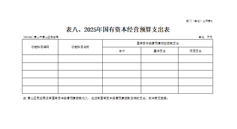 黄山区民政局2025年没有国有资本经营预算拨款收入,也没有使用国有资本经营预算拨款安排的支出。