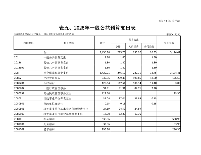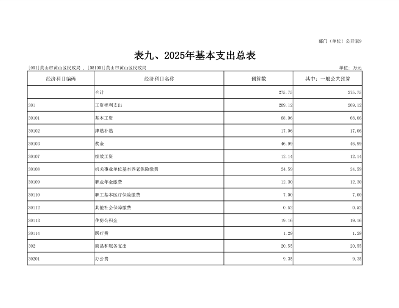 黄山区民政局2025年一般公共预算基本支出275.75万元,其中: