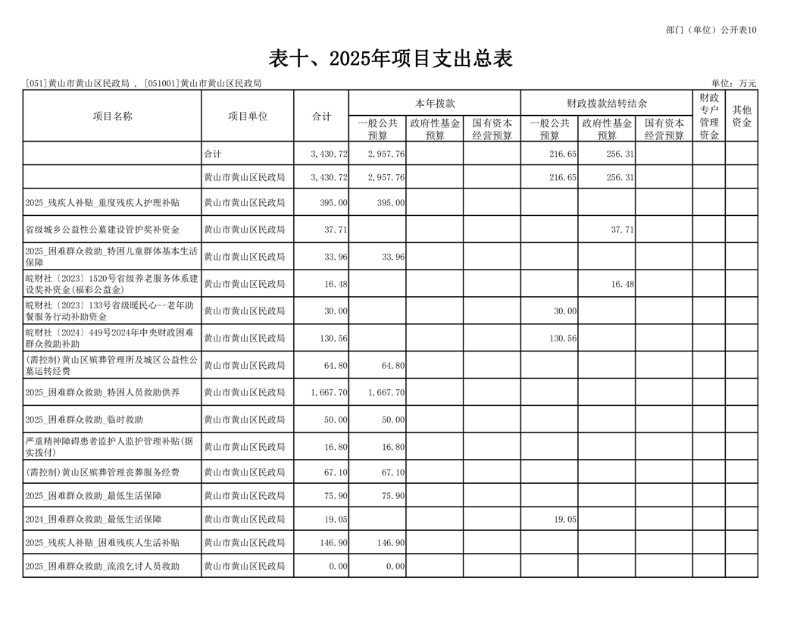 黄山区民政局2025年16个项目实行了绩效目标管理,涉及一般公共预算当年财政拨款2957.76万元。