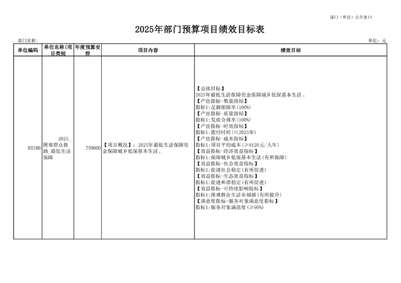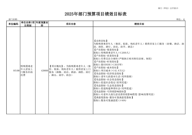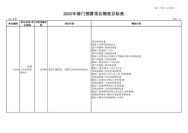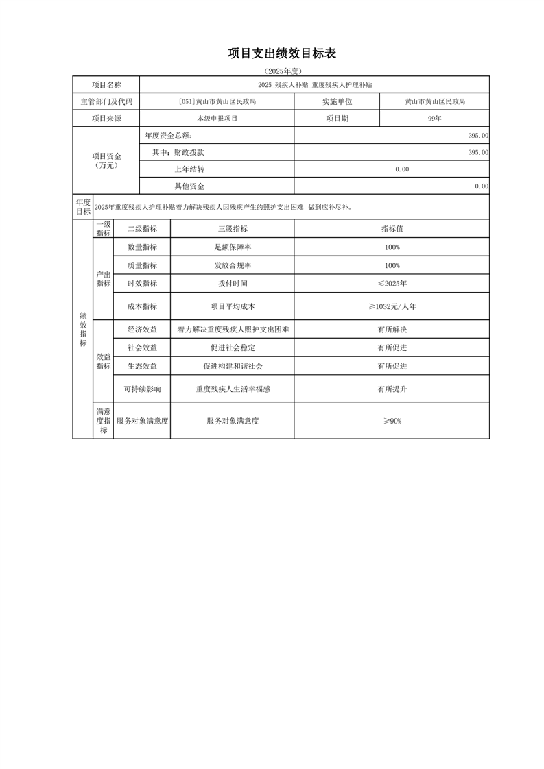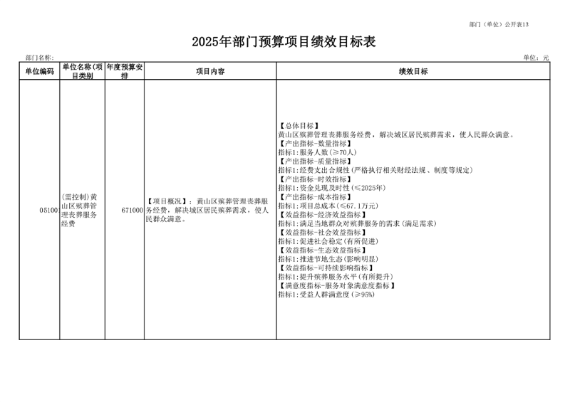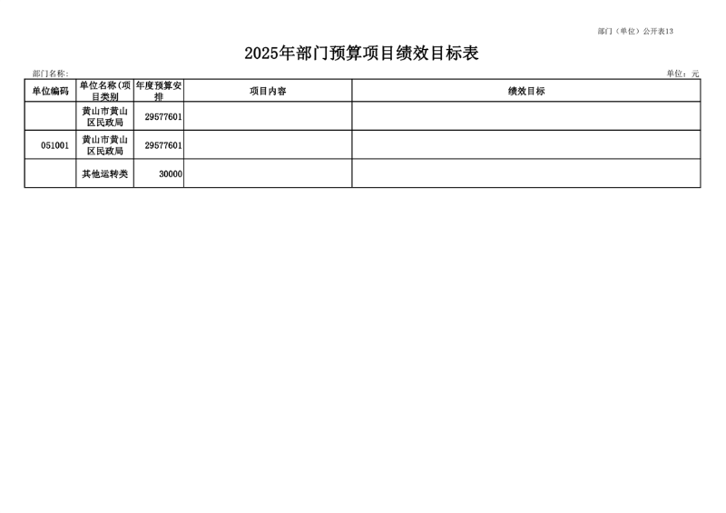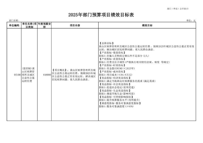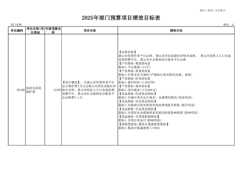 13.黄山区民政局2025年项目支出绩效目标及项目情况表