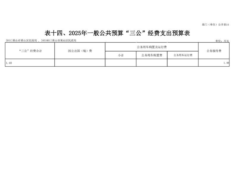 14.黄山区民政局2025年“三公”经费财政拨款支出预算表