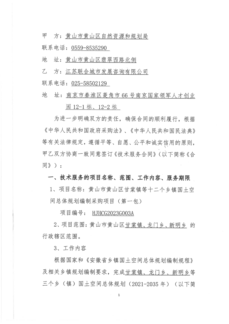 黄山市黄山区甘棠镇十二个乡镇国土空间总体规划编制采购项目(甘棠镇、龙门乡、新明乡)