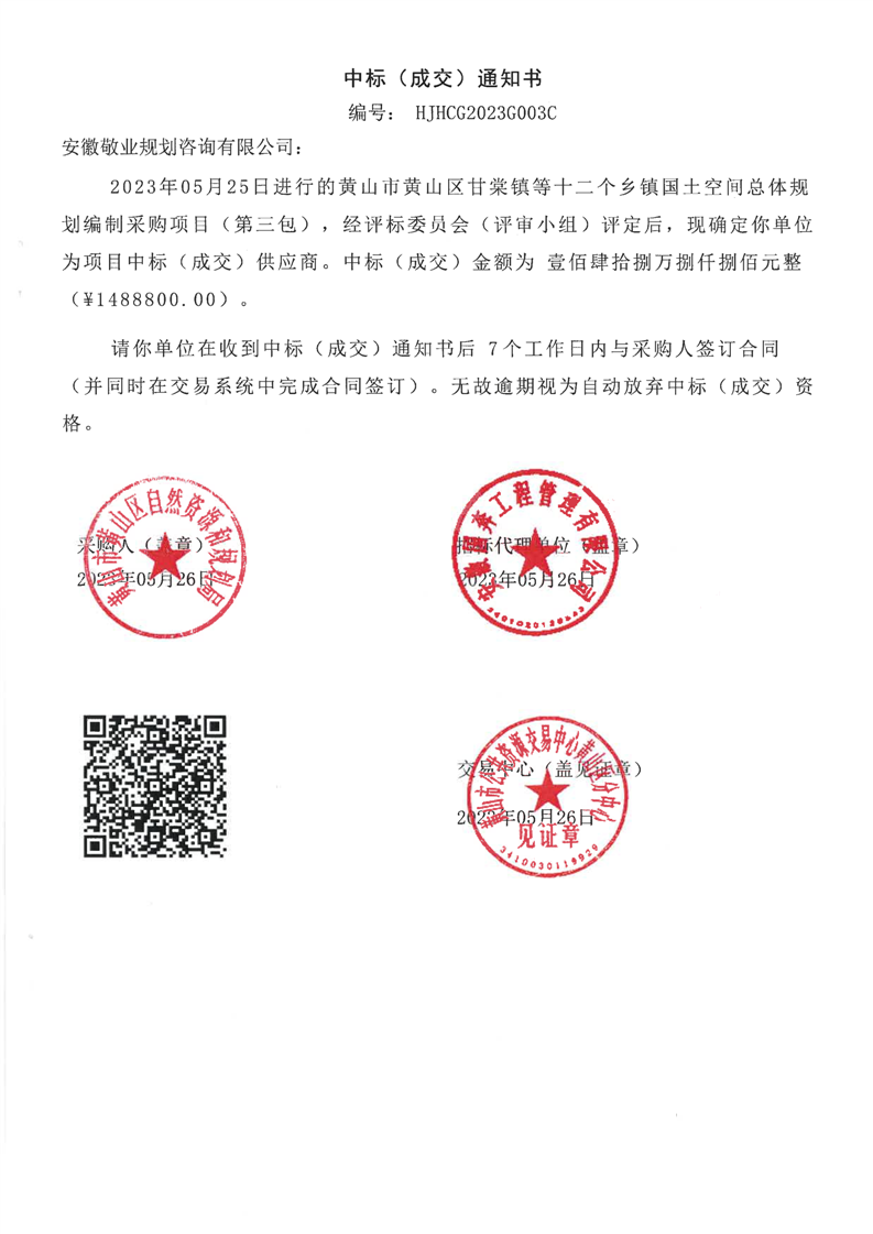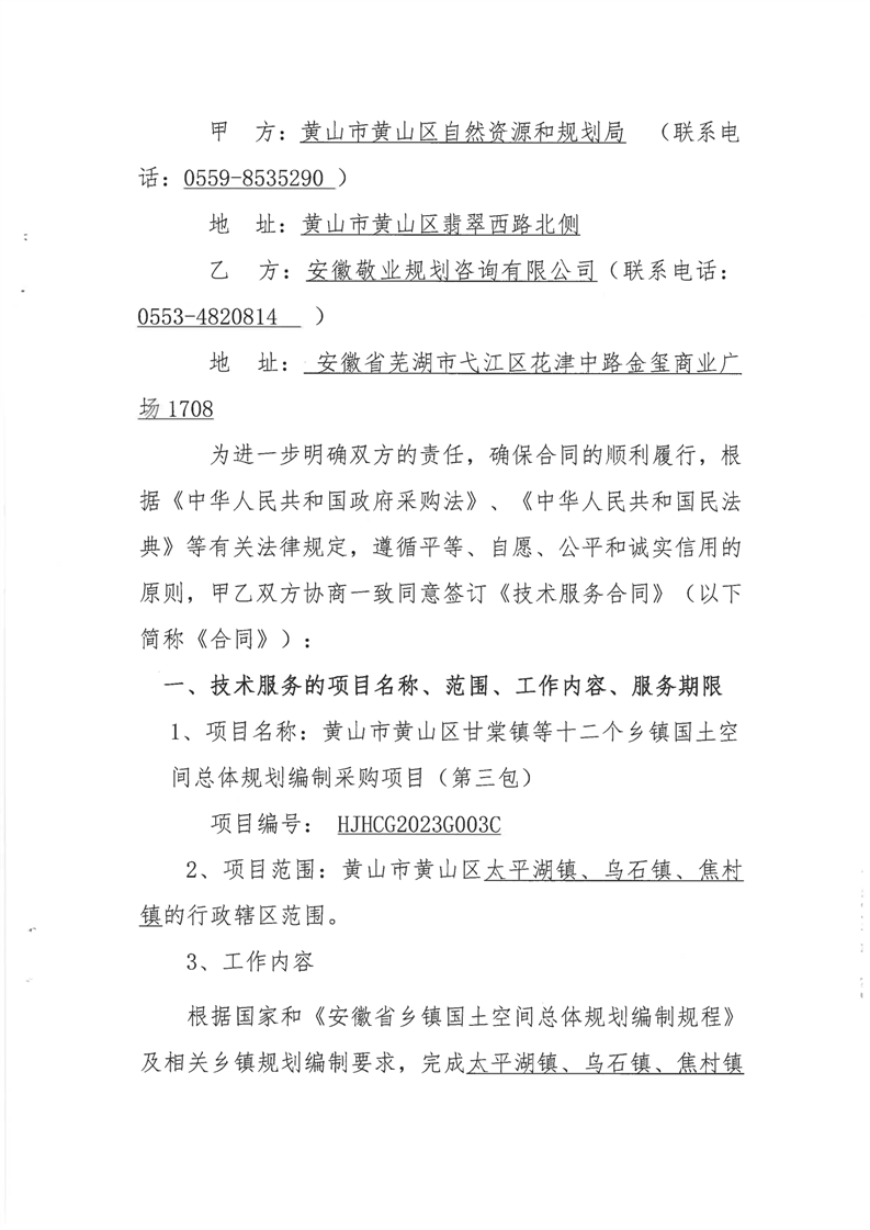 黄山市黄山区甘棠镇等十二个乡镇国土空间总体规划编制采购项目(太平湖镇、乌石镇、焦村镇)