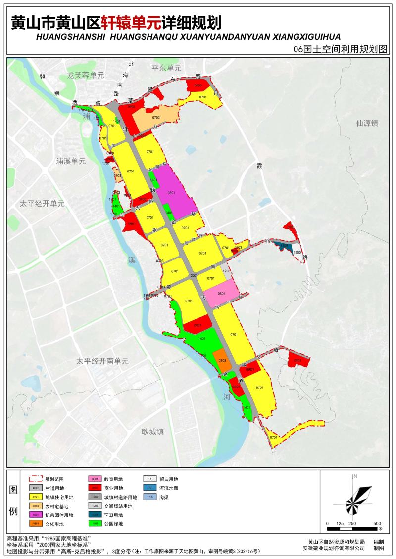 根据《中华人民共和国土地管理法》(2019年修正)、《中华人民共和国土地管理法实施条例》(2021年修订)、《安徽省自然资源厅关于做好城镇开发边界内详细规划编制管理工作的通知》(皖自然资规划函〔2023〕91号)、《安徽省国土空间详细规划编制规程》(试行)等相关要求,依据《黄山市国土空间总体规划(2021-2035年)》,我局会同黄山区政府组织编制了《黄山市黄山区轩辕单元详细规划》。为进一步推进自然资源和规划管理的科学化、民主化、法治化,不断提高公众参与自然资源和规划的意识,维护全社会对自然资源和规划的知情权与监督权,现将规划主要内容向社会公开公示,欢迎社会各界提出宝贵意见和建议。