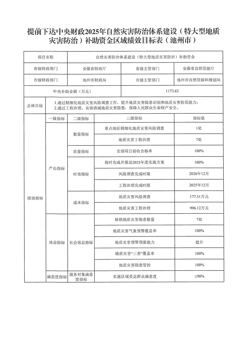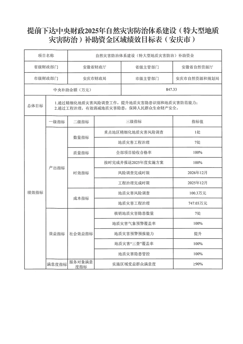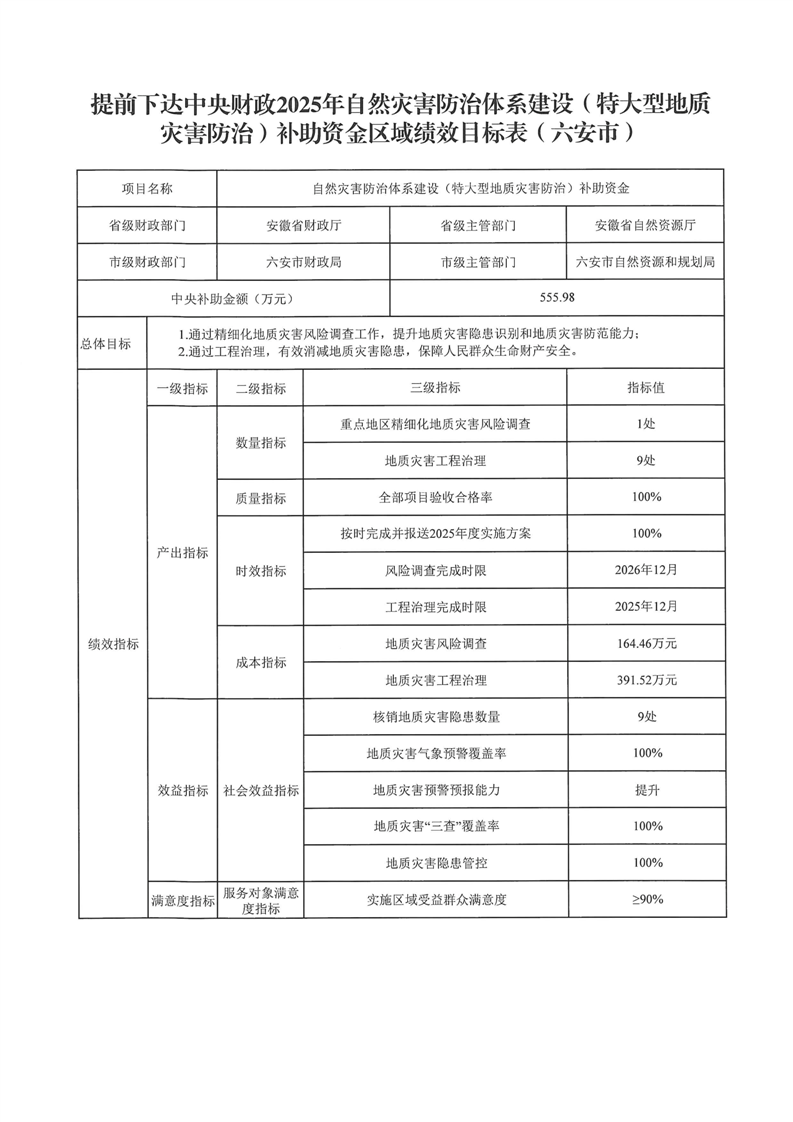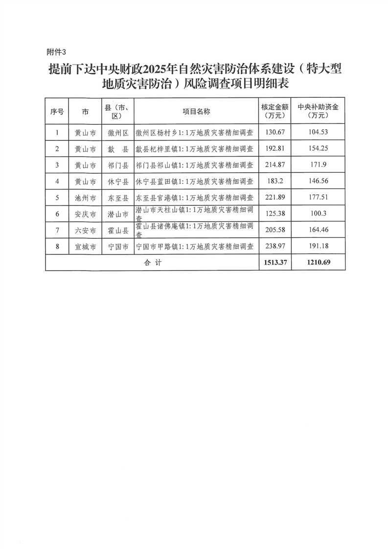 安徽省财政厅 安徽省自然资源厅关于提前下达中央财政2025年自然灾害防治体系建设补助资金的通知
