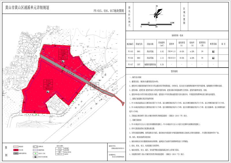 黄山市黄山区浦溪单元PX-015、PX-016、PX-017地块控制指标汇总表 |