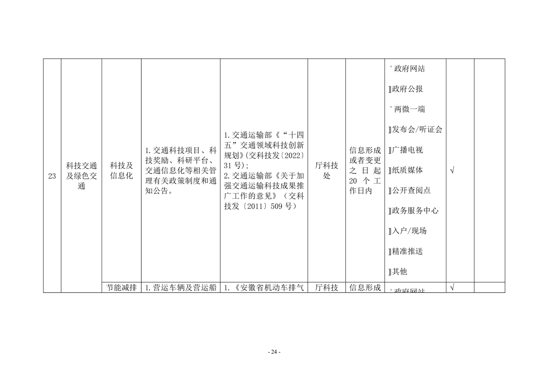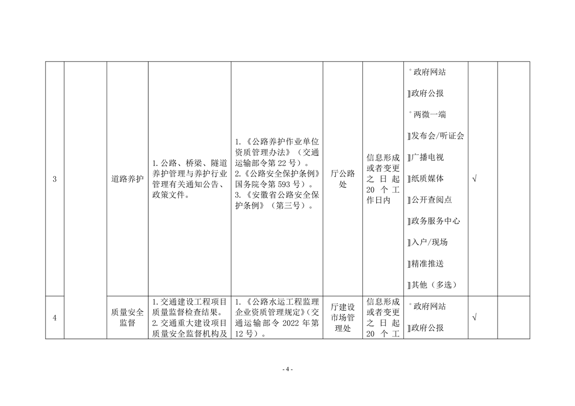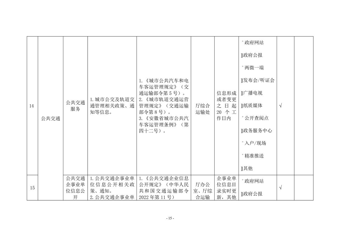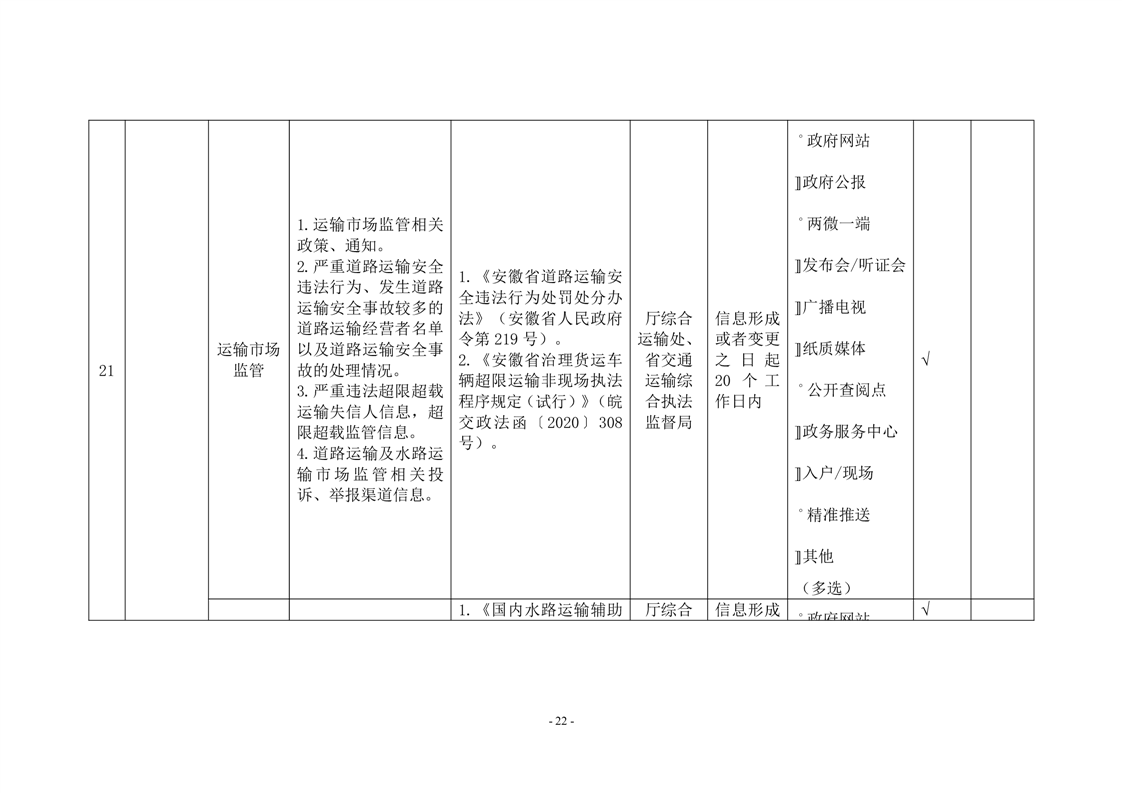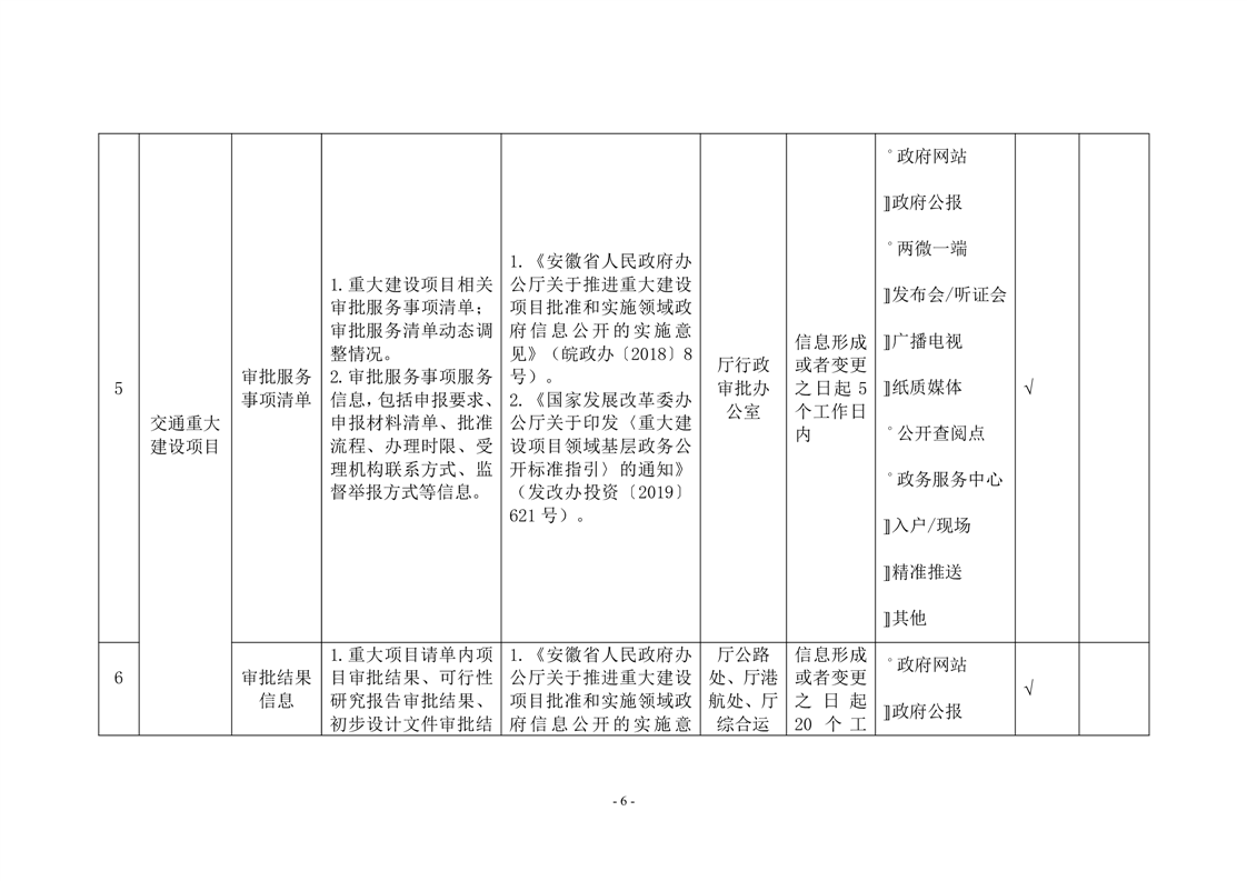 安徽省交通运输厅关于印发安徽省交通运输重点领域信息公开事项目录的通知