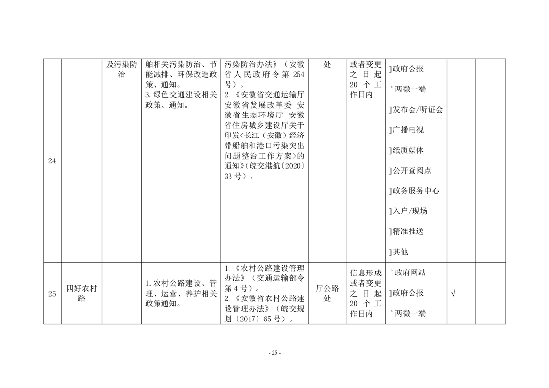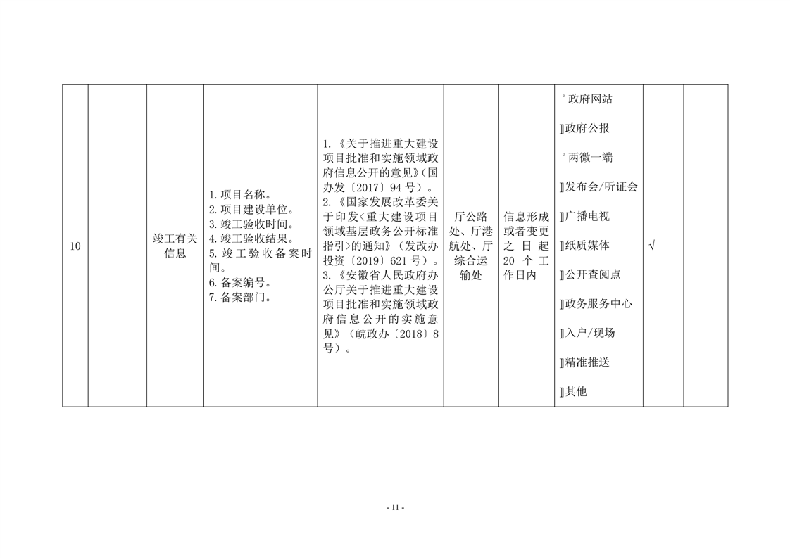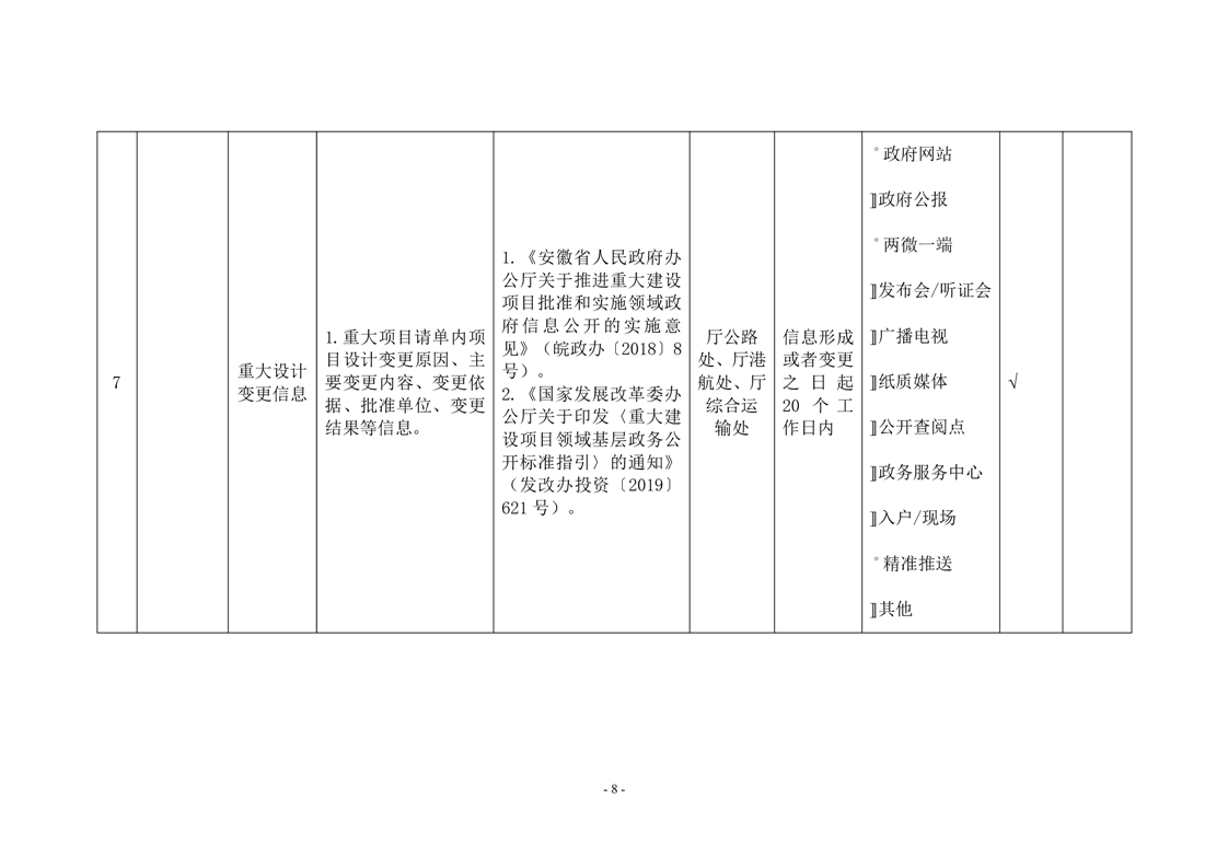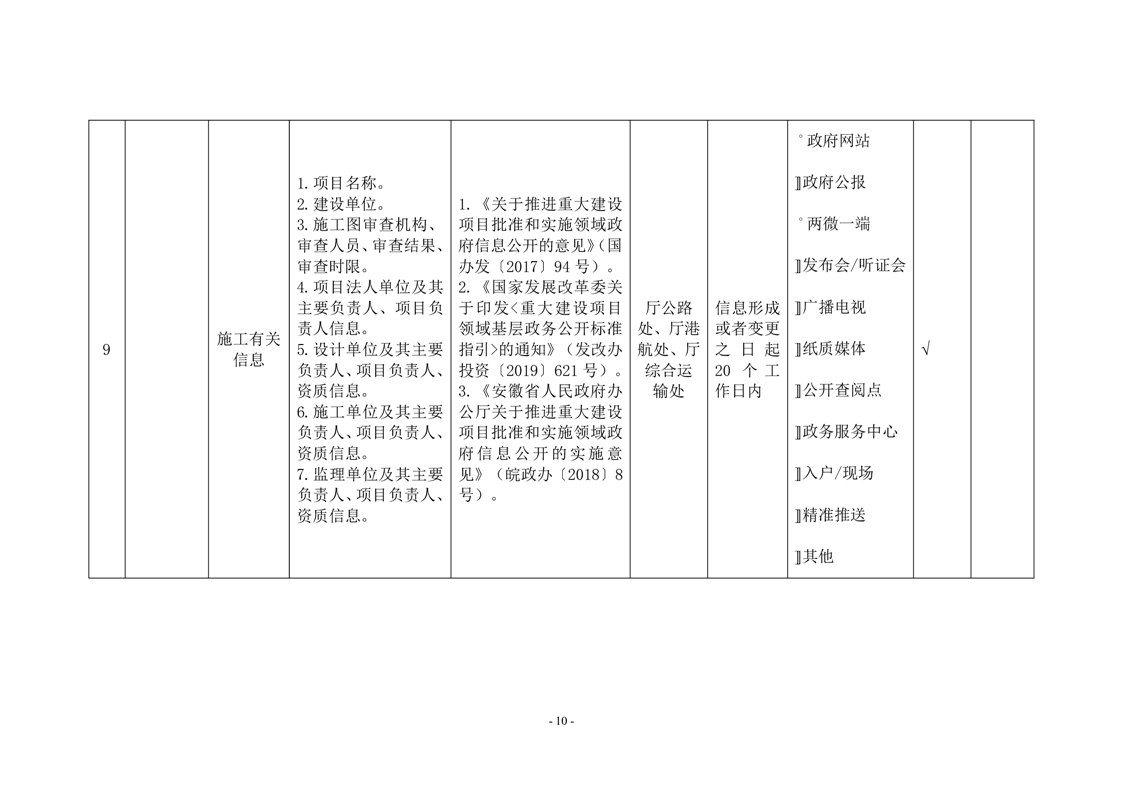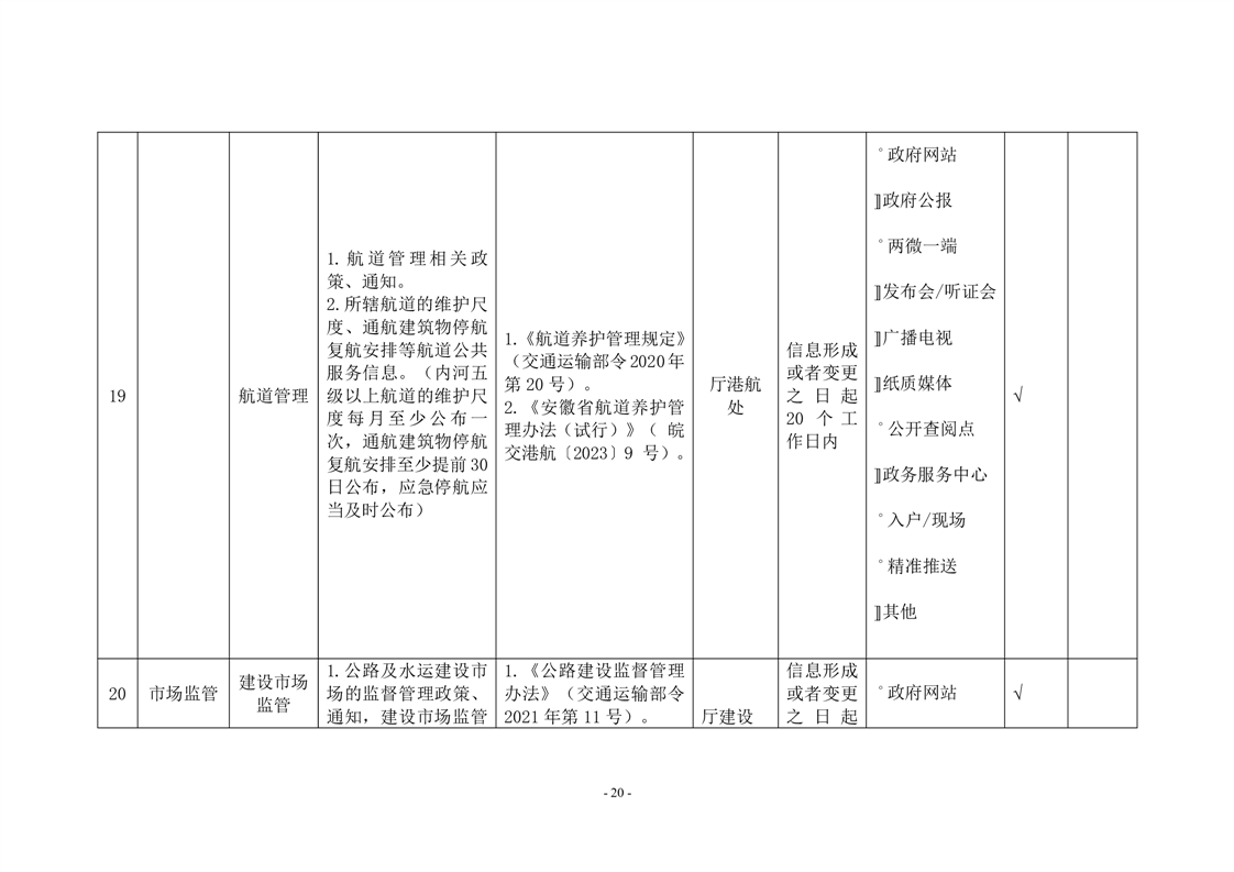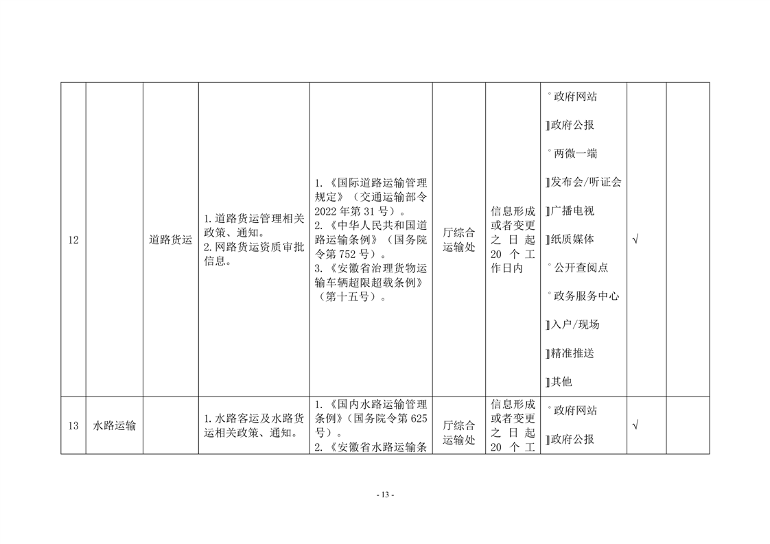 安徽省交通运输厅关于印发安徽省交通运输重点领域信息公开事项目录的通知