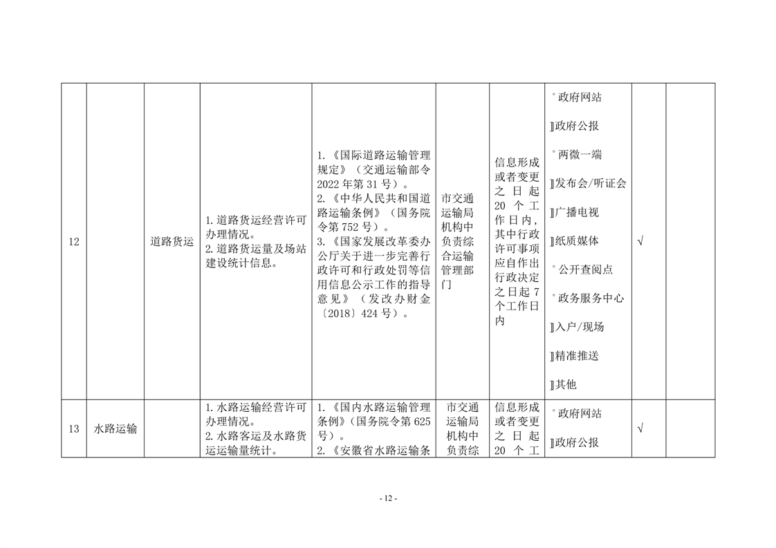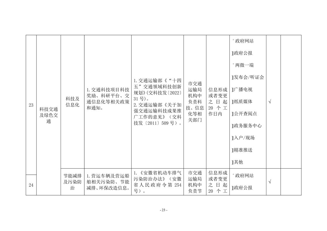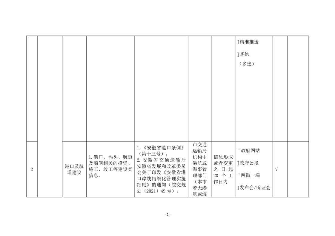 2.安徽省交通运输重点领域信息公开事项目录(市级)