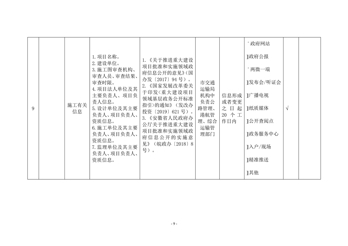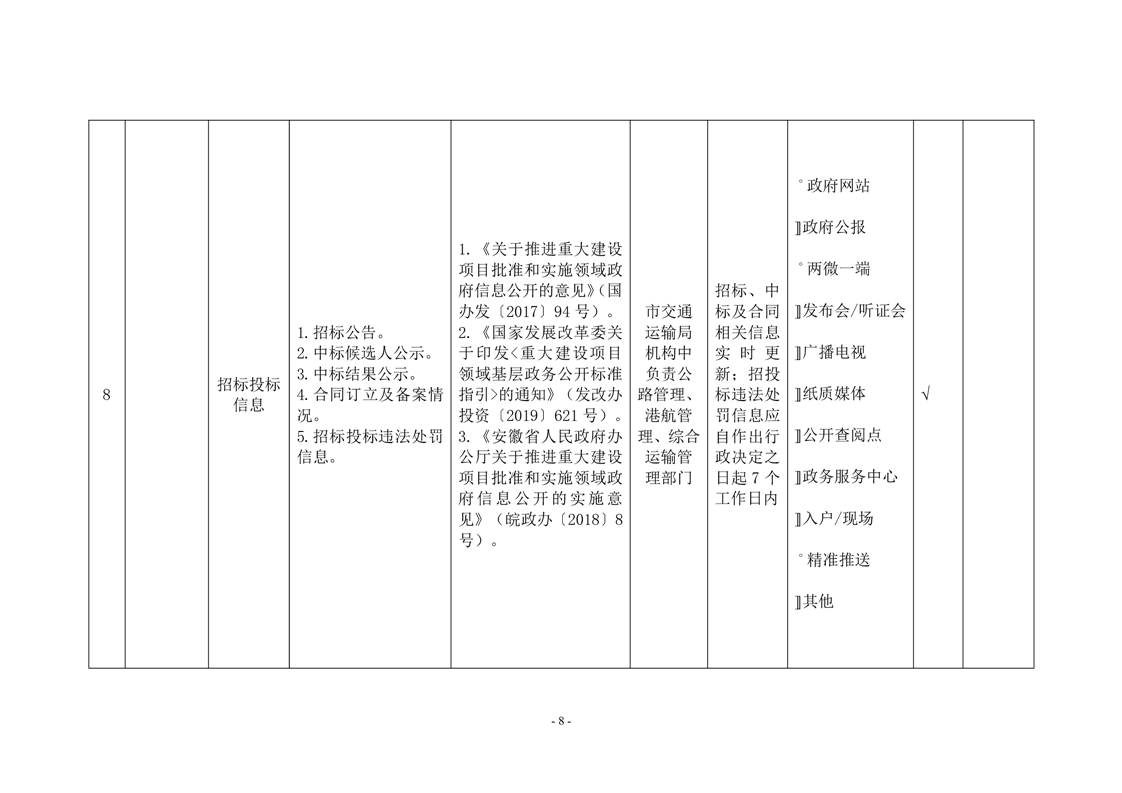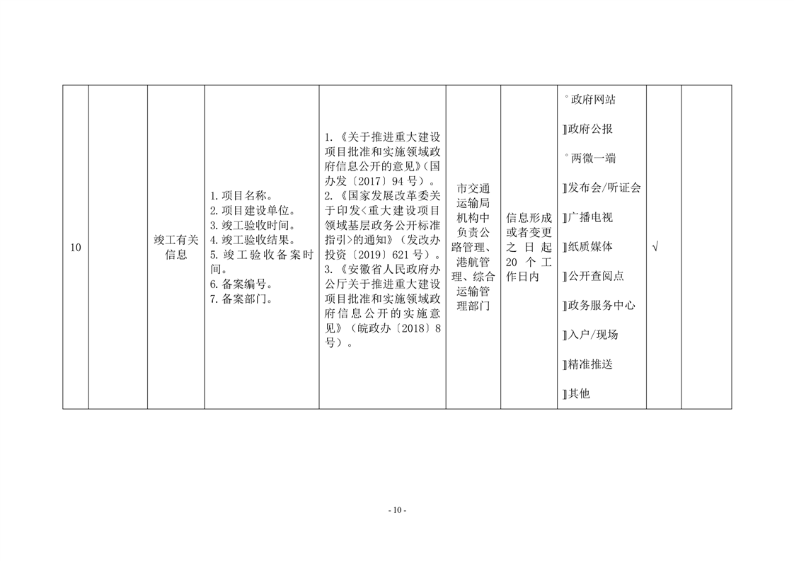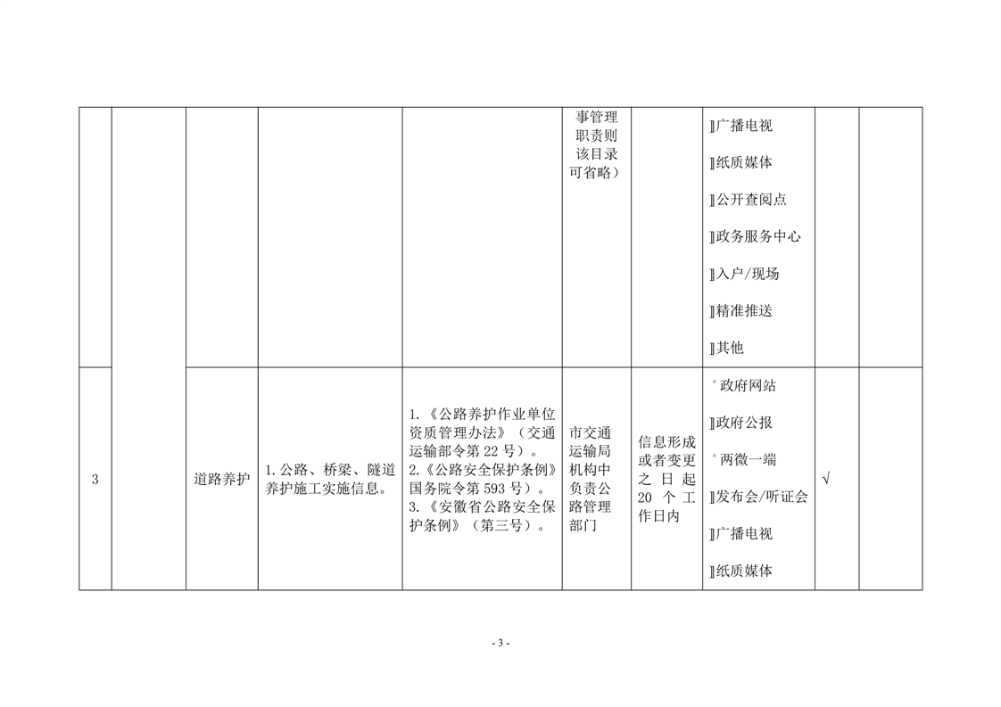 2.安徽省交通运输重点领域信息公开事项目录(市级)