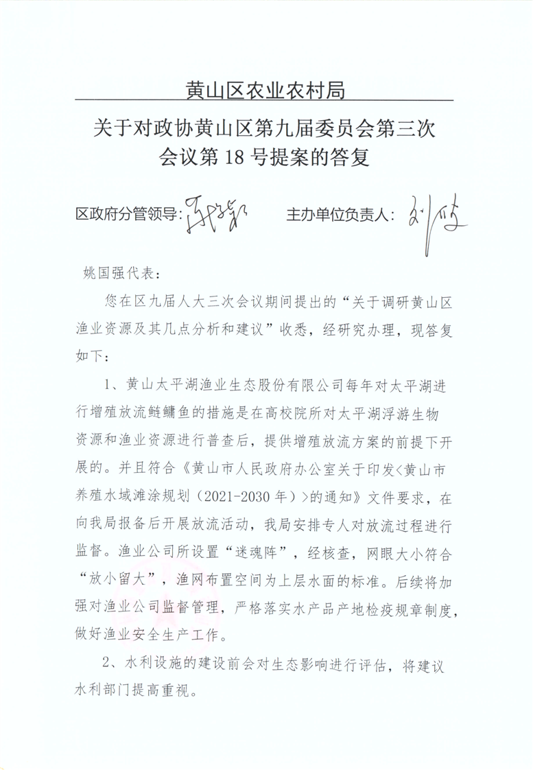 关于对政协黄山区第九届委员会第三次会议第18号提案的答复
