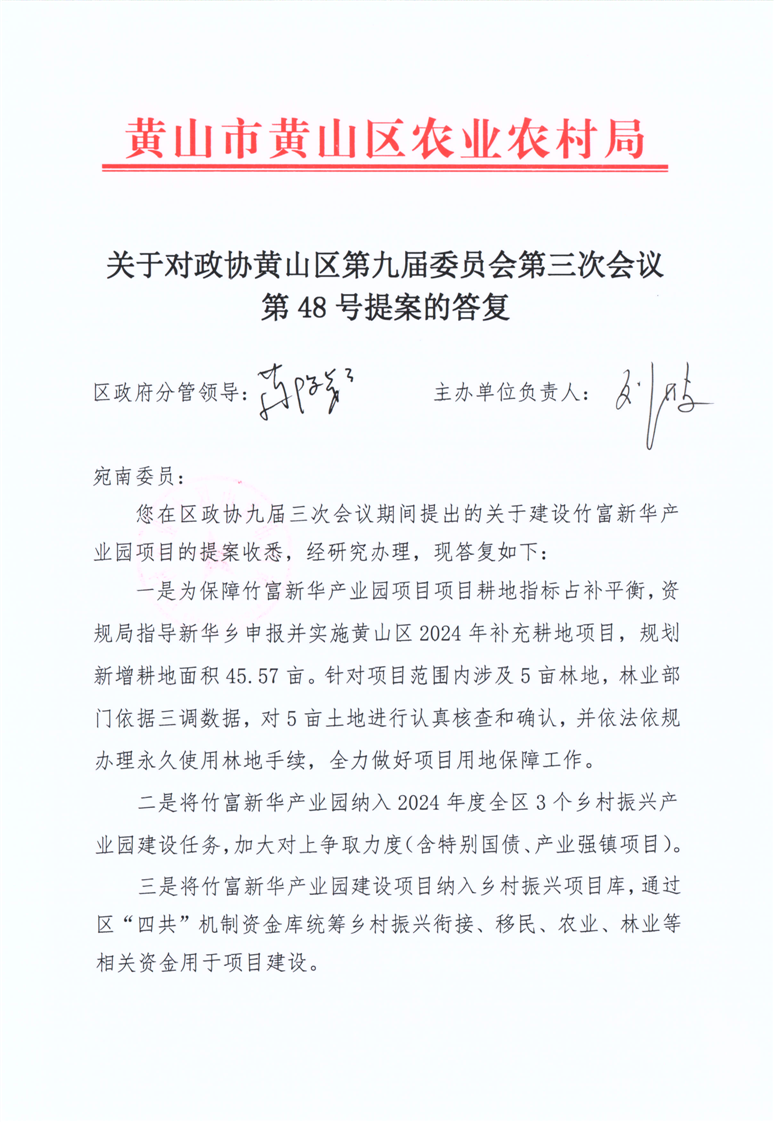 关于对政协黄山区第九届委员会第三次会议第48号提案的答复