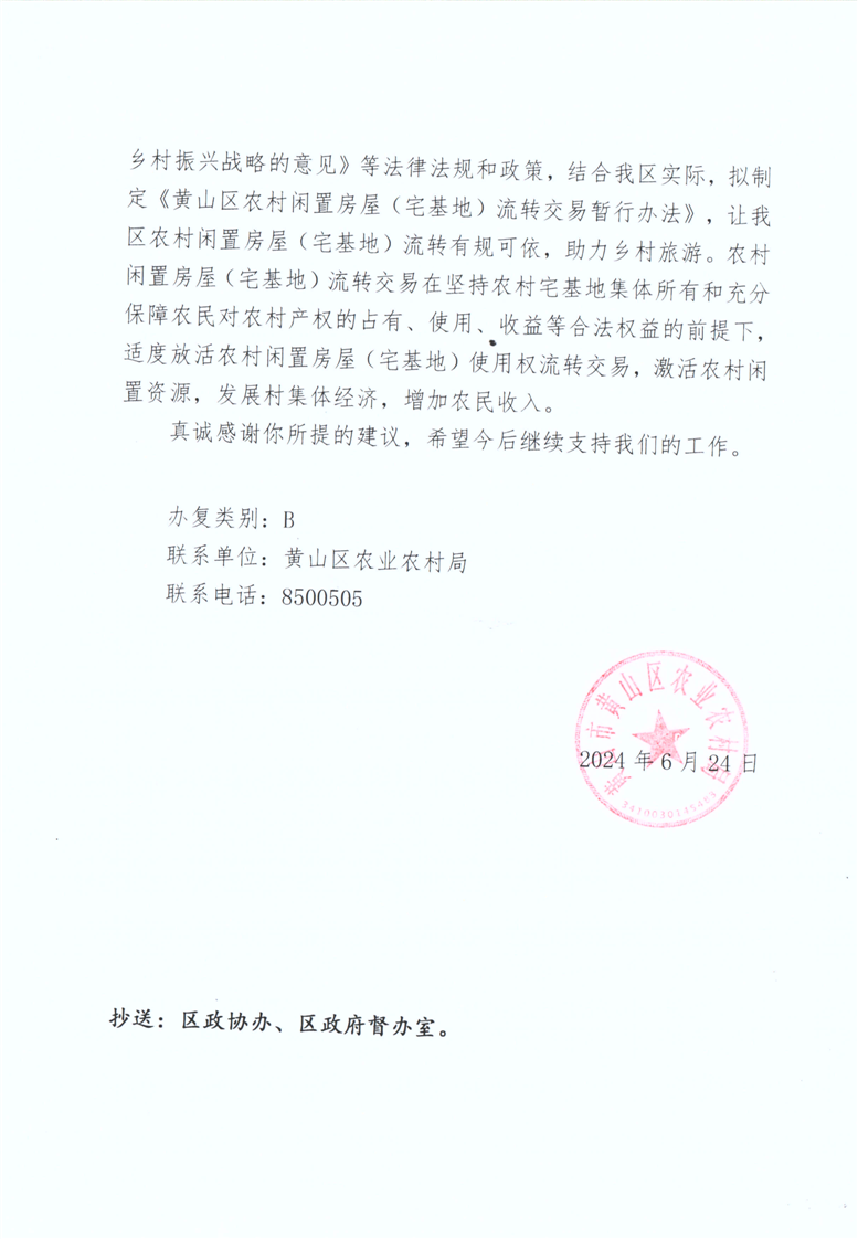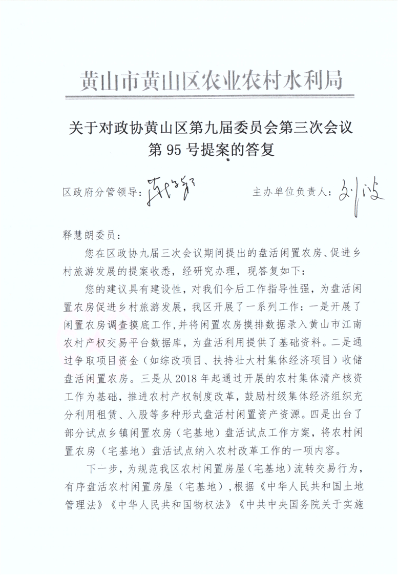 关于对政协黄山区第九届委员会第三次会议第95号提案的答复