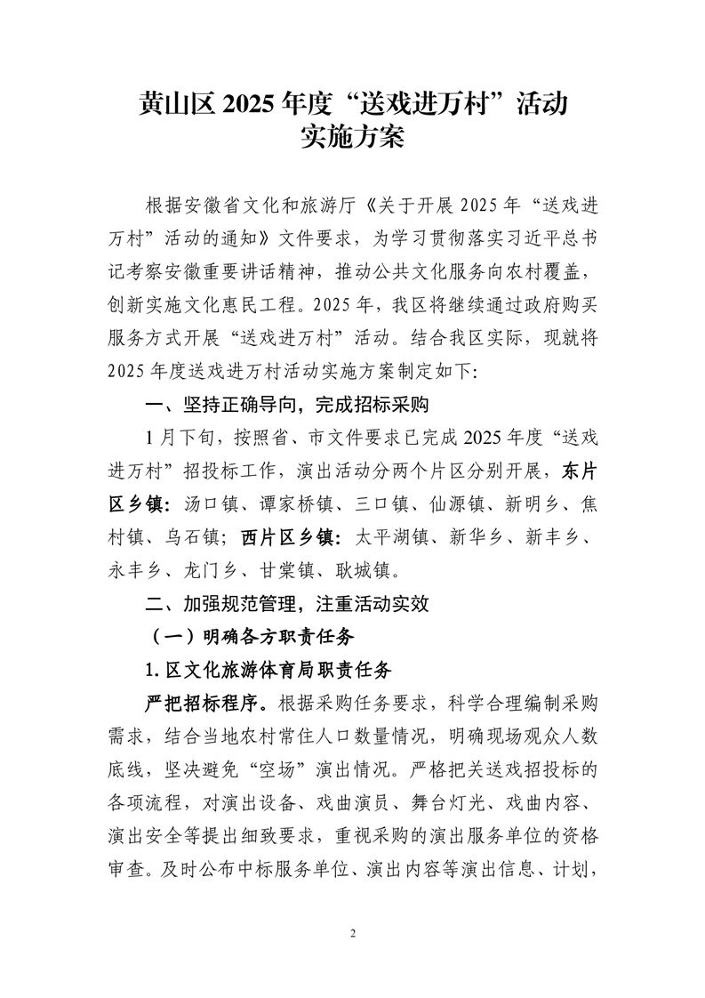关于印发《黄山区2025年度“送戏进万村”活动实施方案》的通知