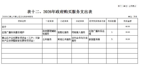 12.黄山区文化旅游体育局部门2026年政府购买服务预算支出表