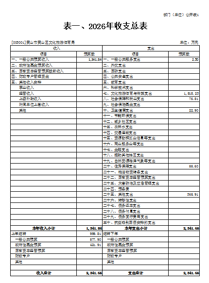 1.黄山区文化旅游体育局部门2026年收支预算总表