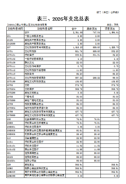 3.黄山区文化旅游体育局部门2026年支出预算总表