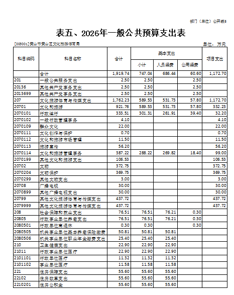5.黄山区文化旅游体育局部门2026年一般公共预算支出表