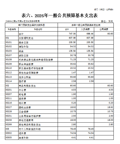 6.黄山区文化旅游体育局部门2026年一般公共预算基本支出表