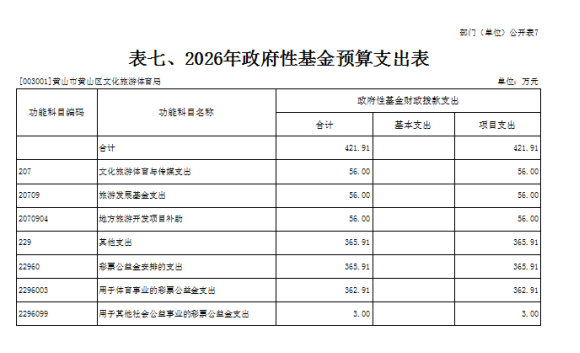 7.黄山区文化旅游体育局部门2026年政府性基金预算支出表