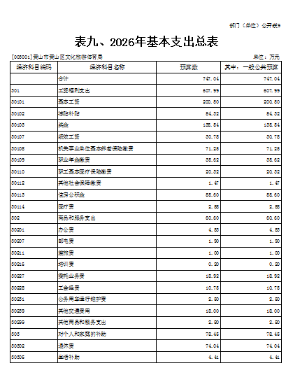 9.黄山区文化旅游体育局部门2026年基本支出表