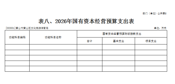 8.黄山区文化旅游体育局部门2026年国有资本经营预算支出表