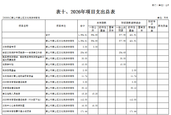 10.黄山区文化旅游体育局部门2026年项目支出表