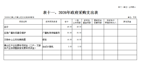 11.黄山区文化旅游体育局部门2026年政府采购预算支出表