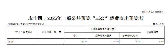14.黄山区文化旅游体育局部门2026年“三公”经费财政拨款支出预算表