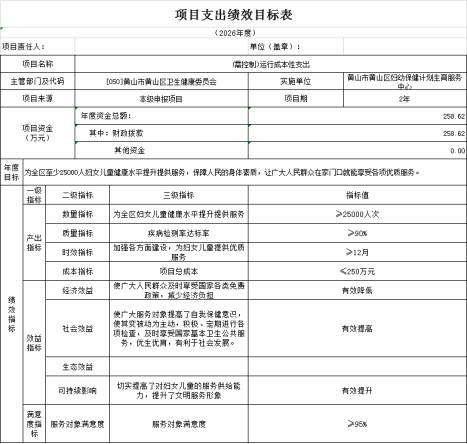 附件:黄山区妇幼保健计划生育服务中心2026年度项目支出绩效目标