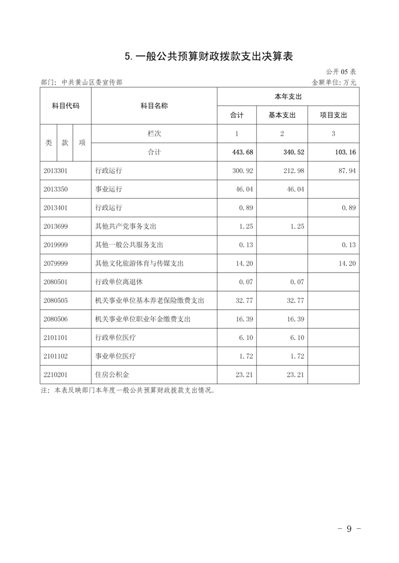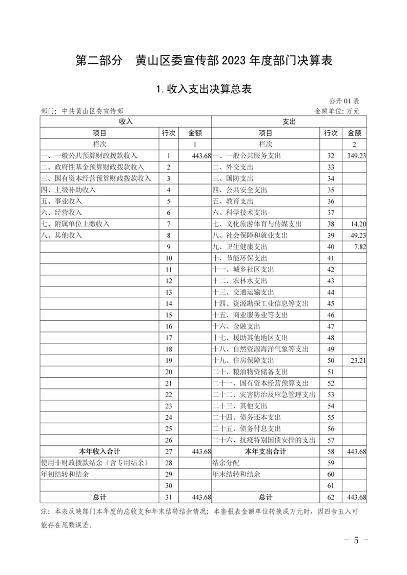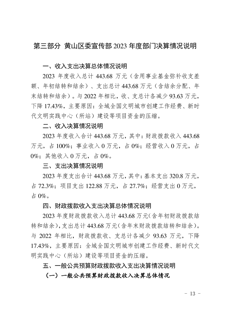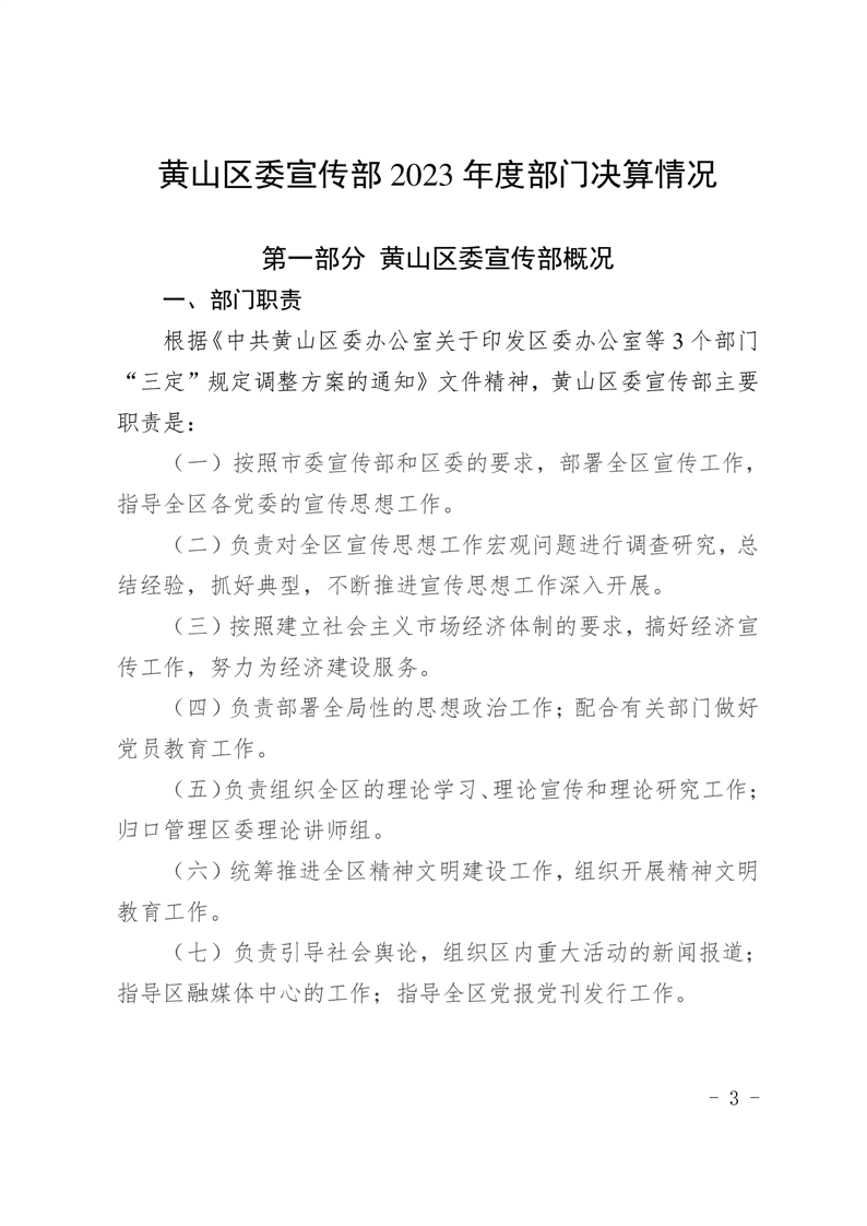 中共黄山区委宣传部2023年度决算