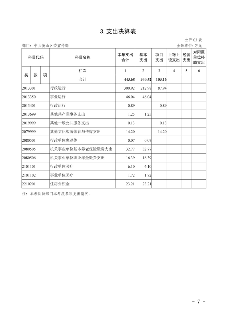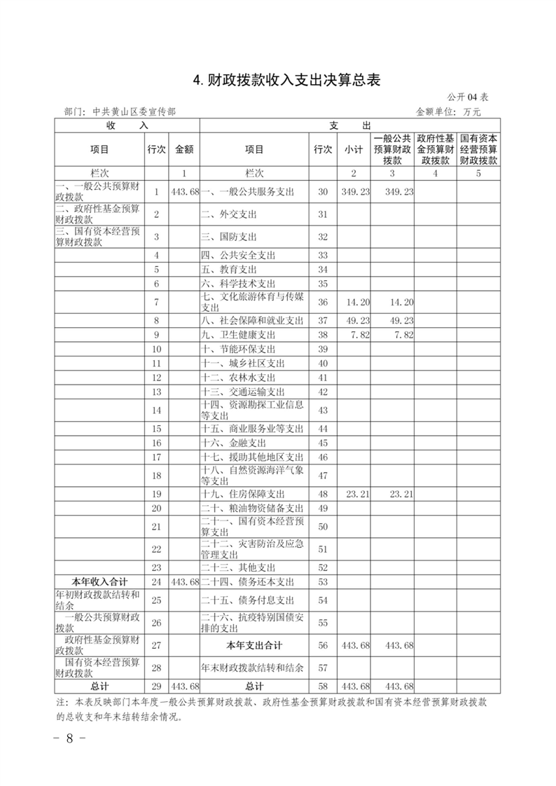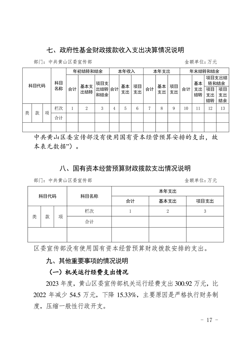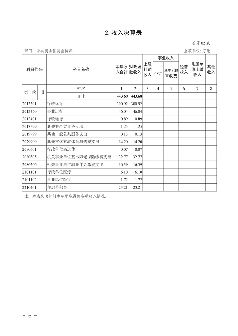 中共黄山区委宣传部2023年度决算