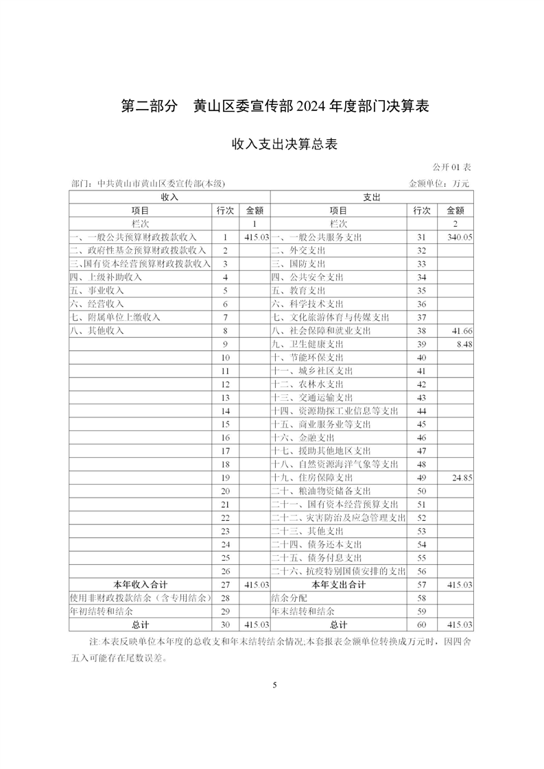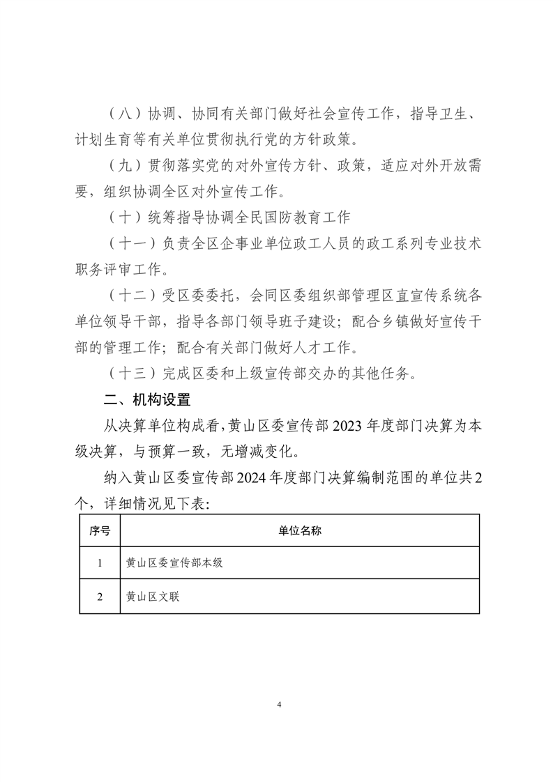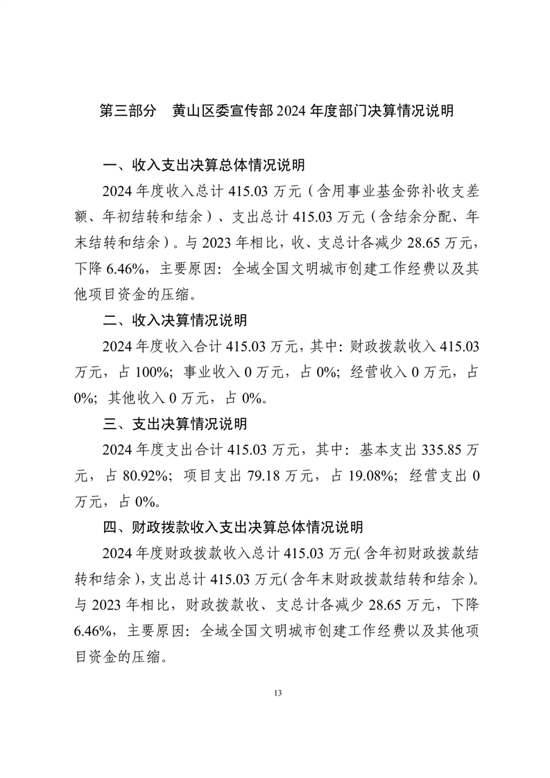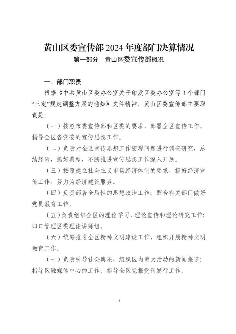 黄山区委宣传部2024年度部门决算