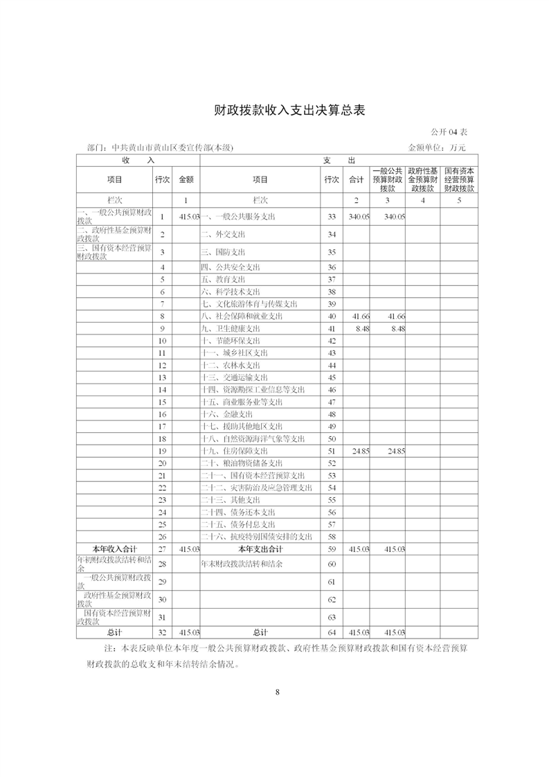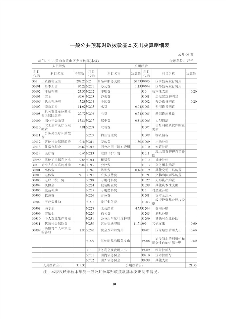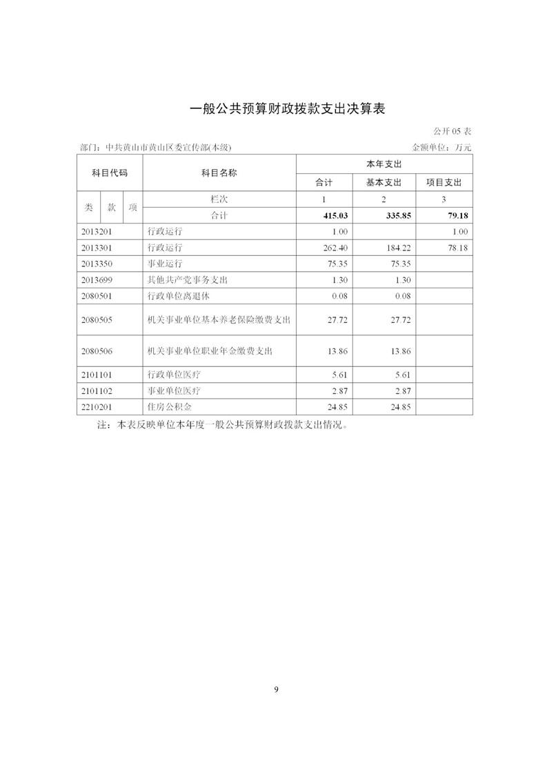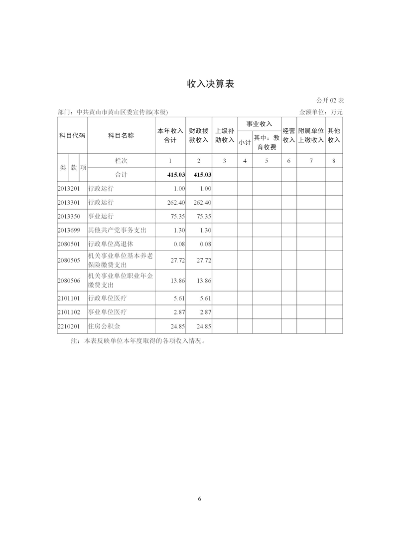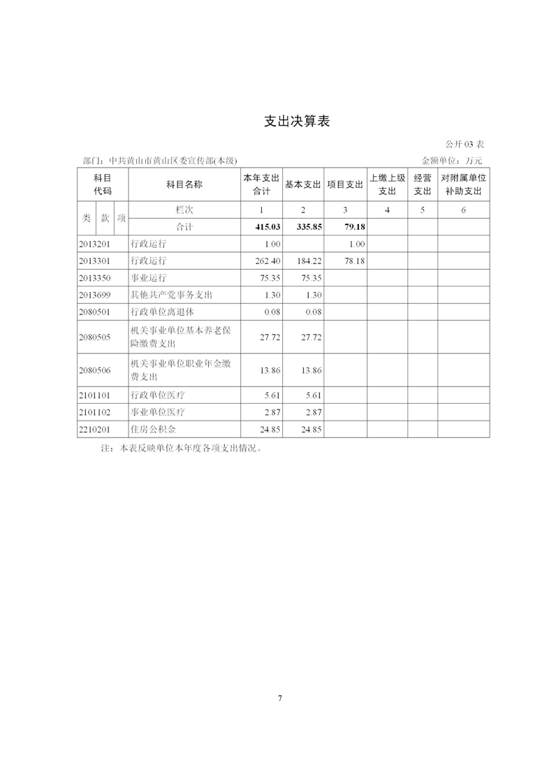 黄山区委宣传部2024年度部门决算